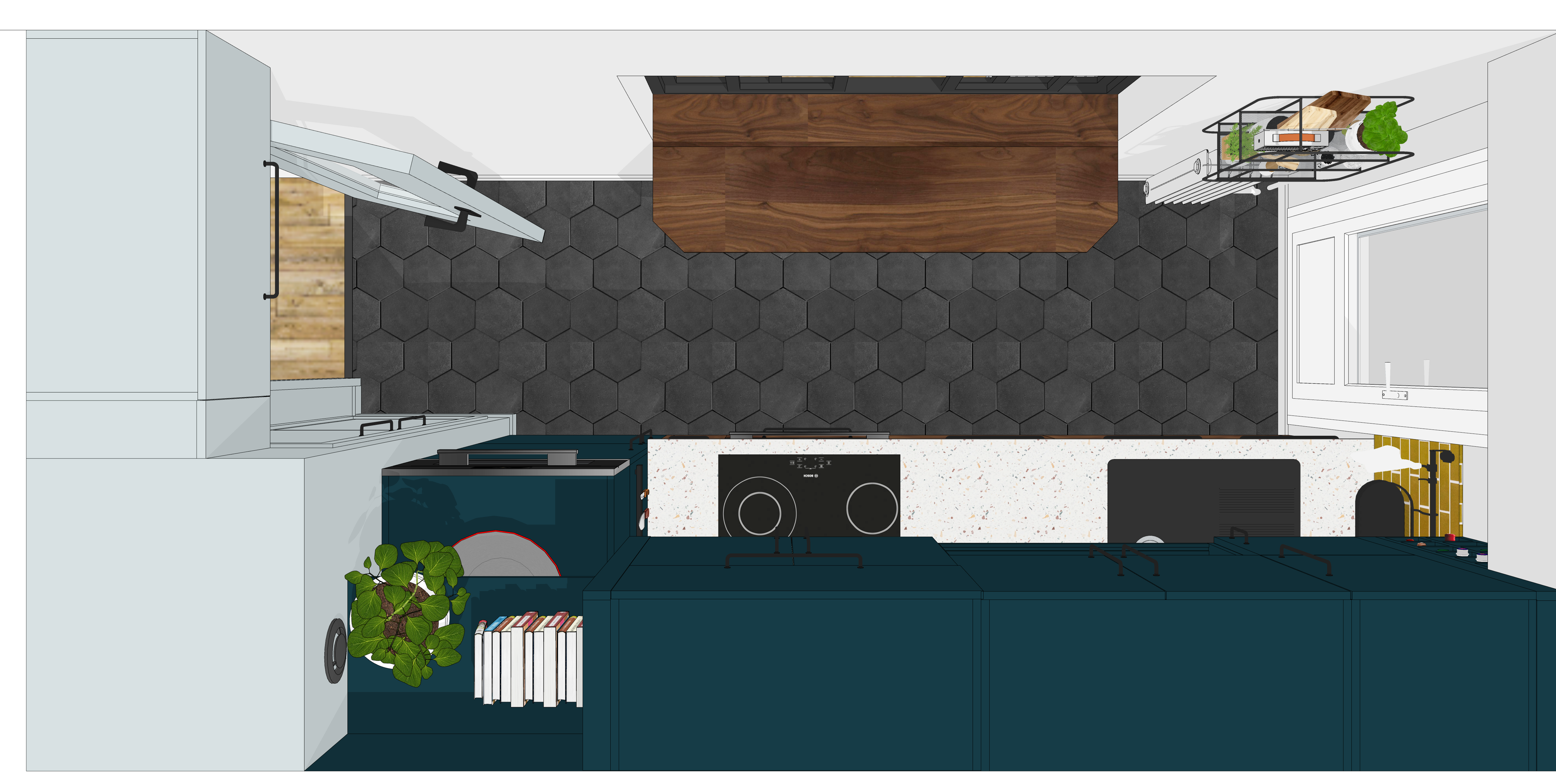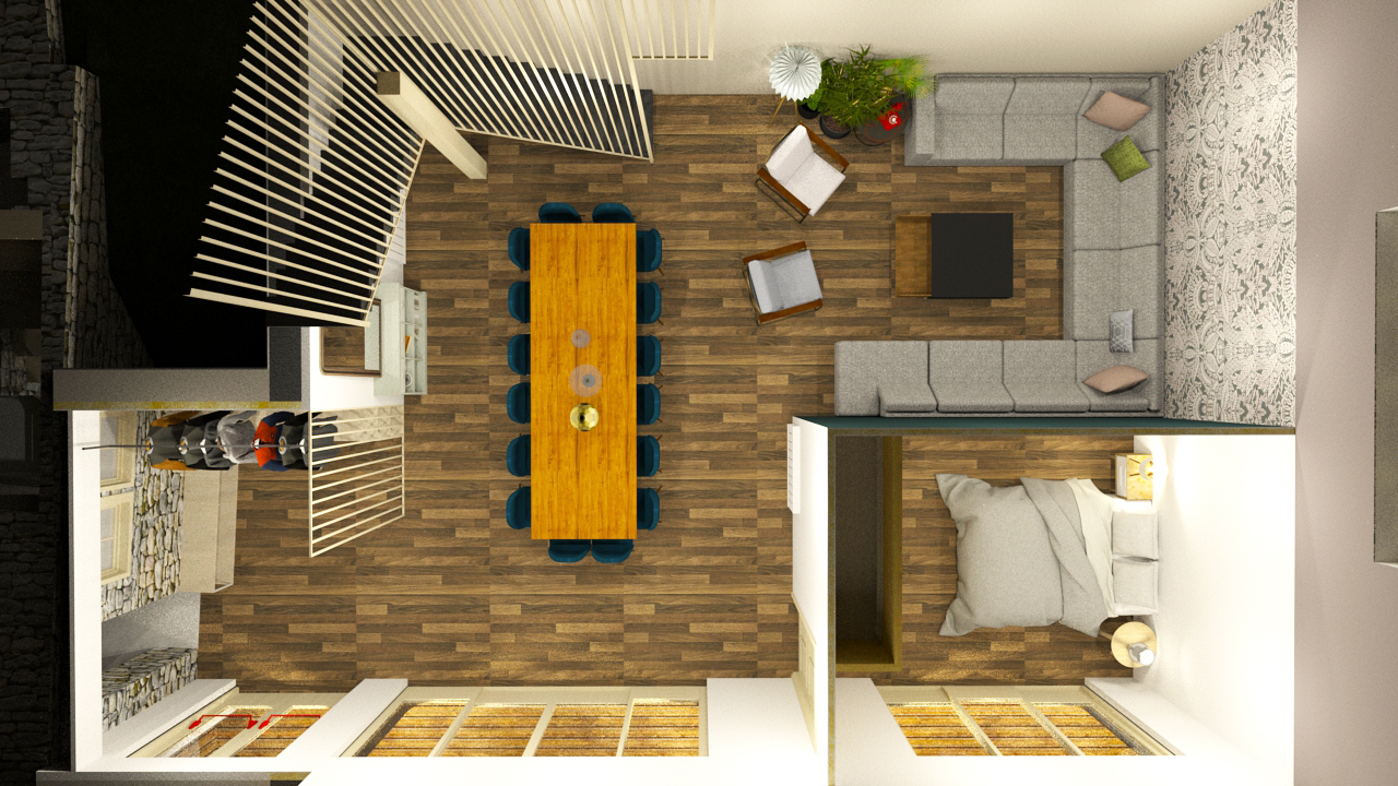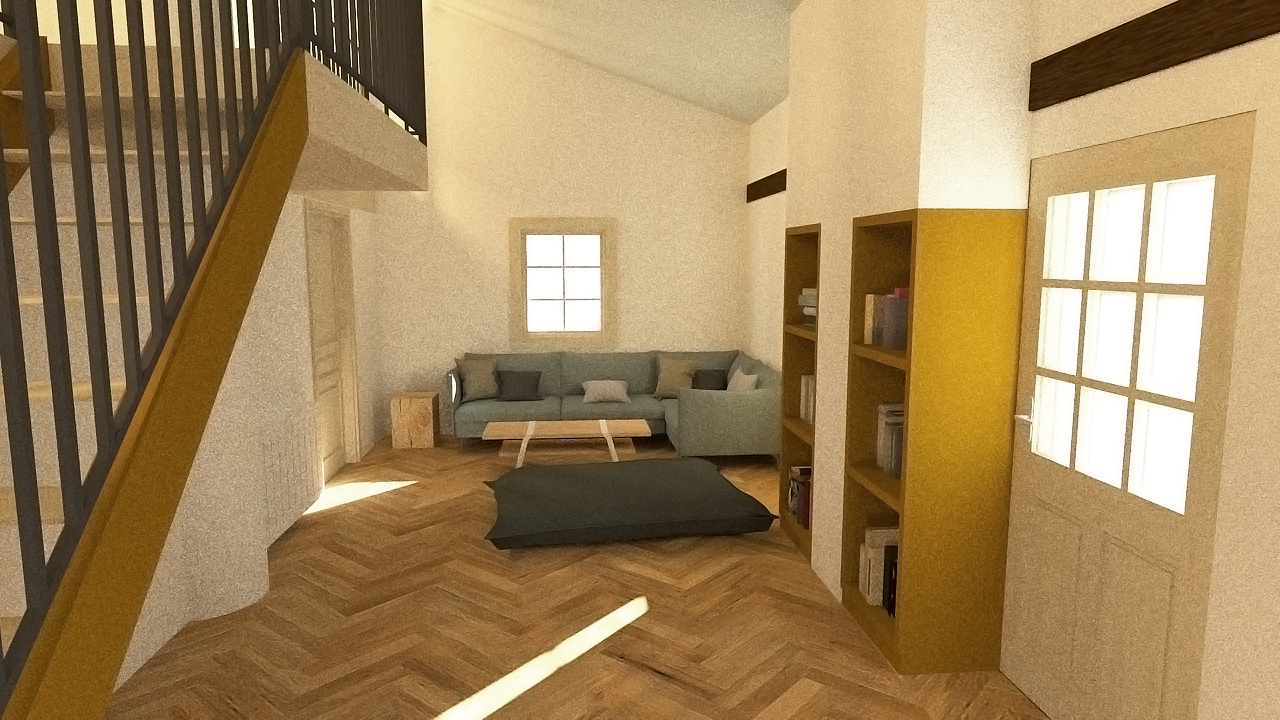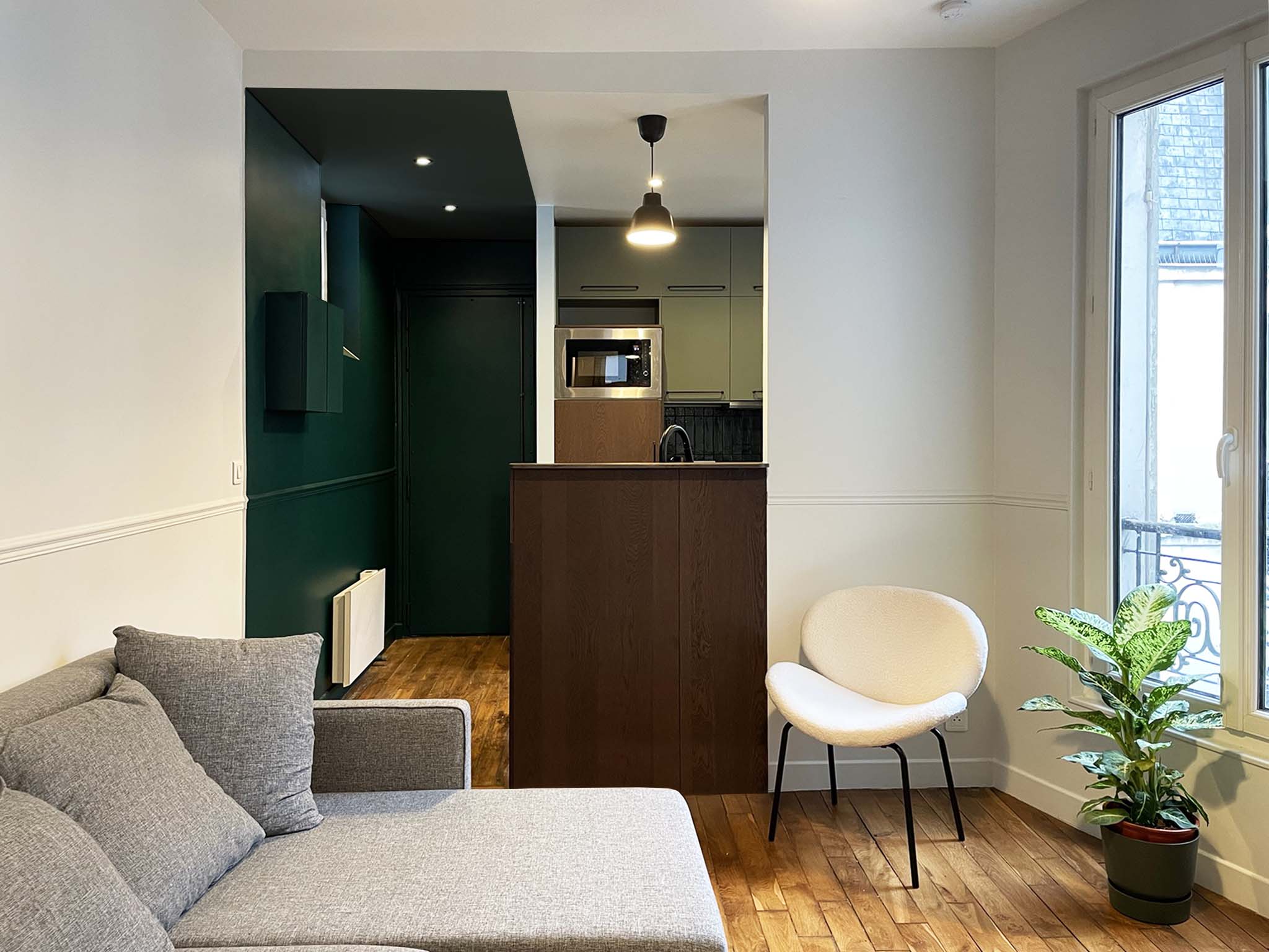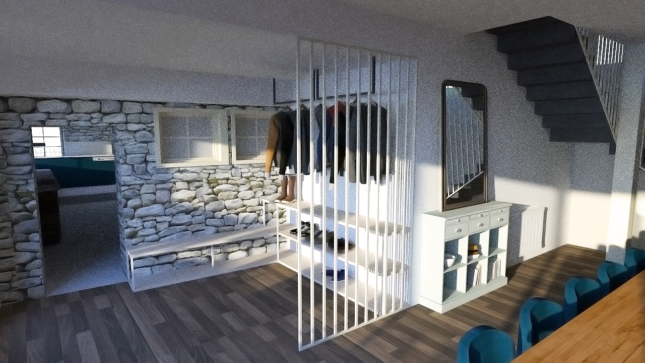 Suppression d’un mur avec cabinet wc entre la cuisine et le salon.