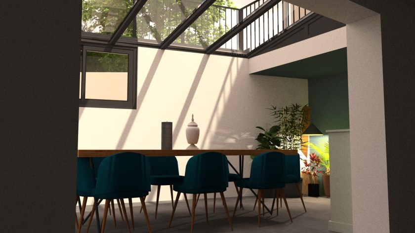 Fermeture d’une cour intérieure par une verrière pour la création d’une salle à manger