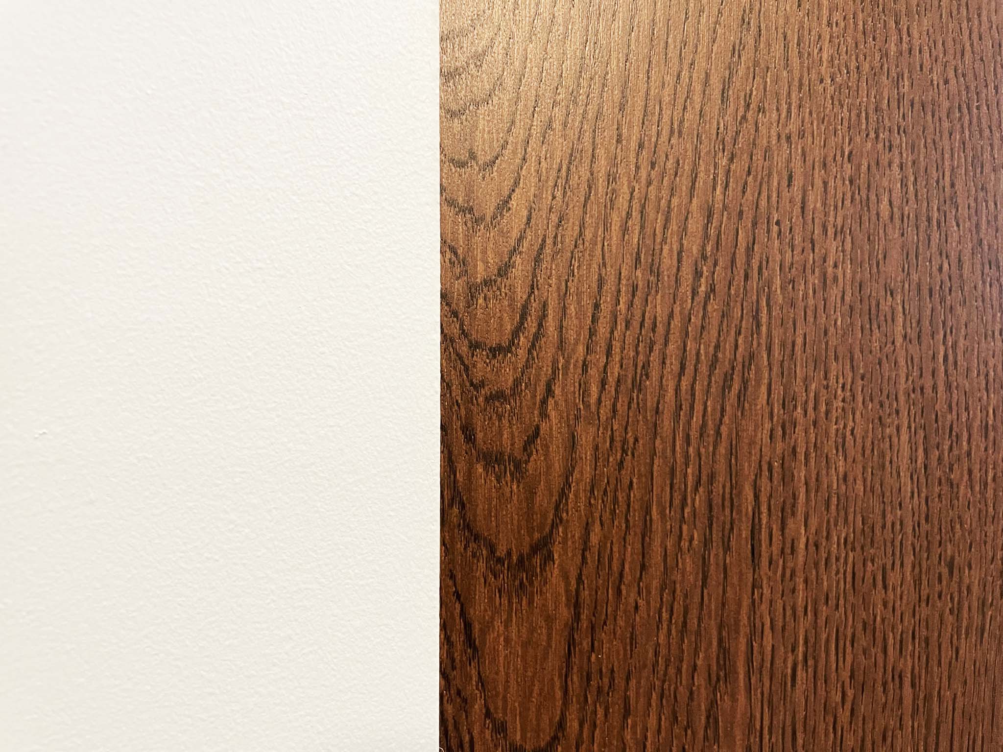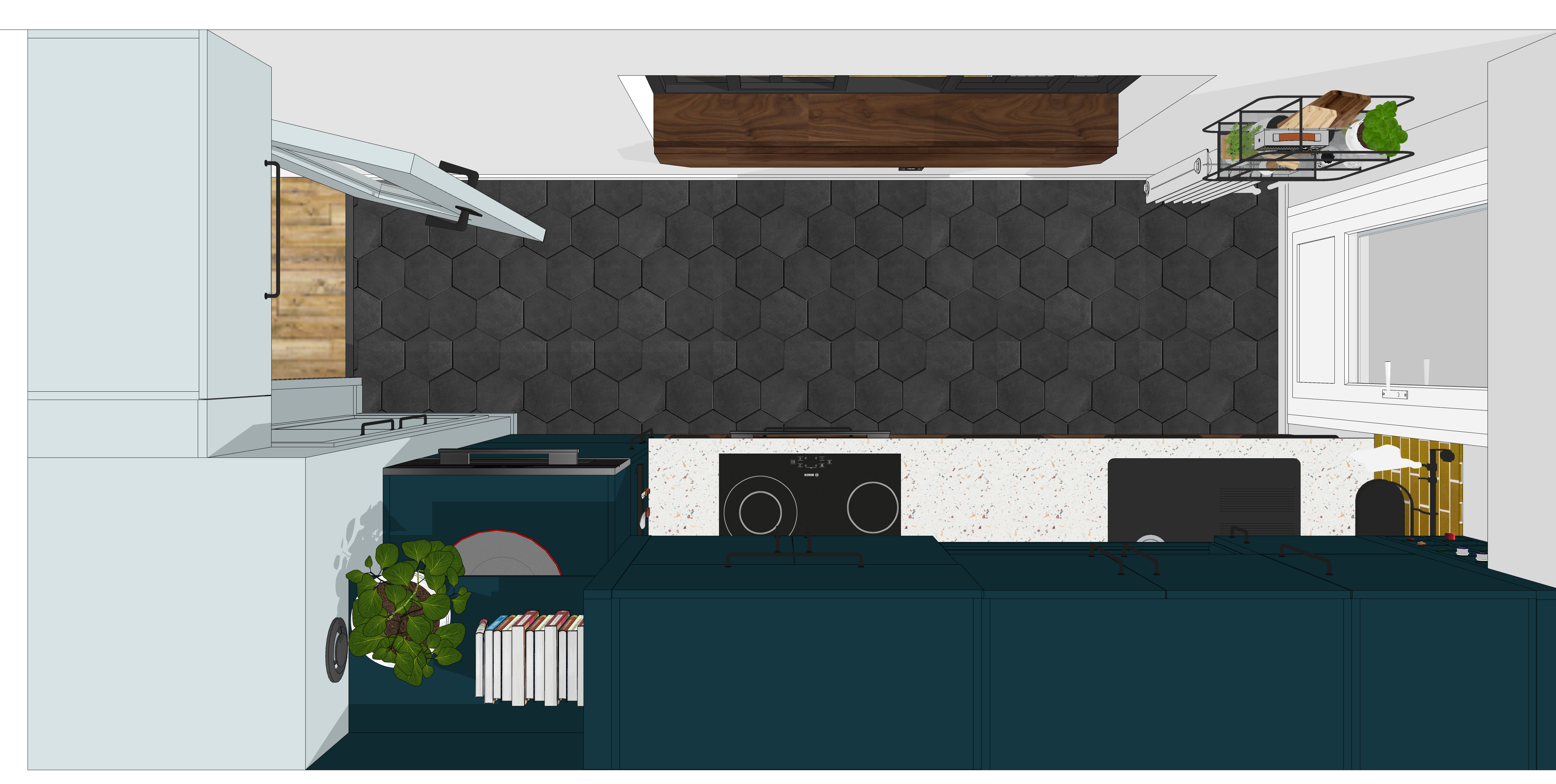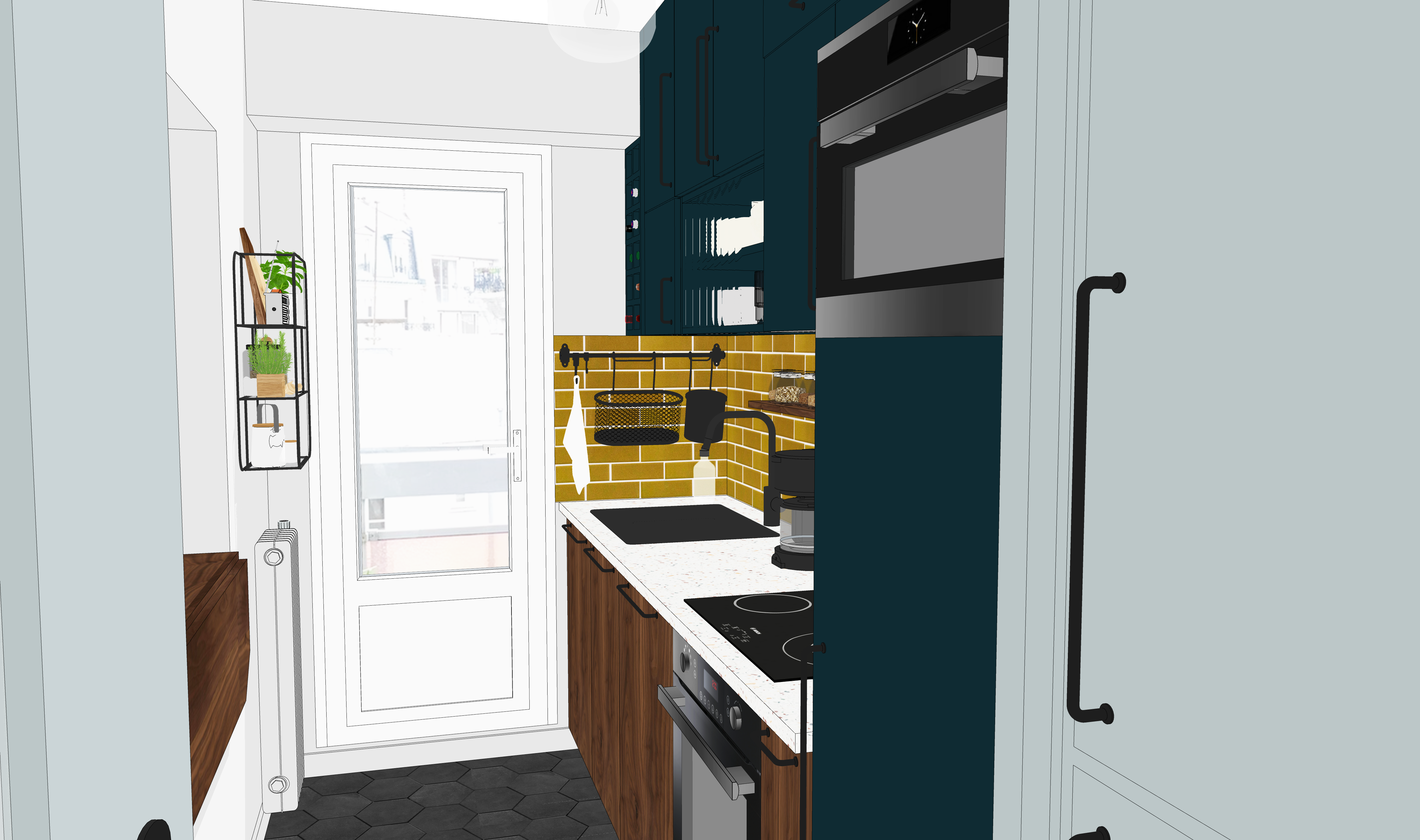 Création d’une verrière coulissante avec vitres en verre cannelé et d’une tablette amovible mange-debout.